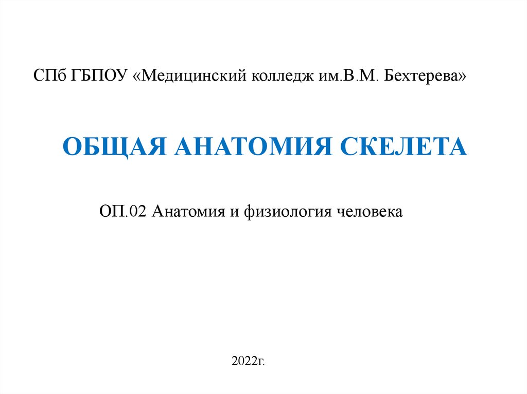 СПб ГБПОУ «Медицинский колледж им.В.М. Бехтерева»ОБЩАЯ АНАТОМИЯ СКЕЛЕТА