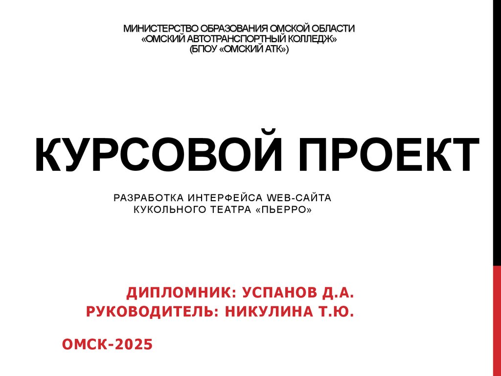 МИНИСТЕРСТВО ОБРАЗОВАНИЯ ОМСКОЙ ОБЛАСТИ«ОМСКИЙ АВТОТРАНСПОРТНЫЙ КОЛЛЕДЖ»