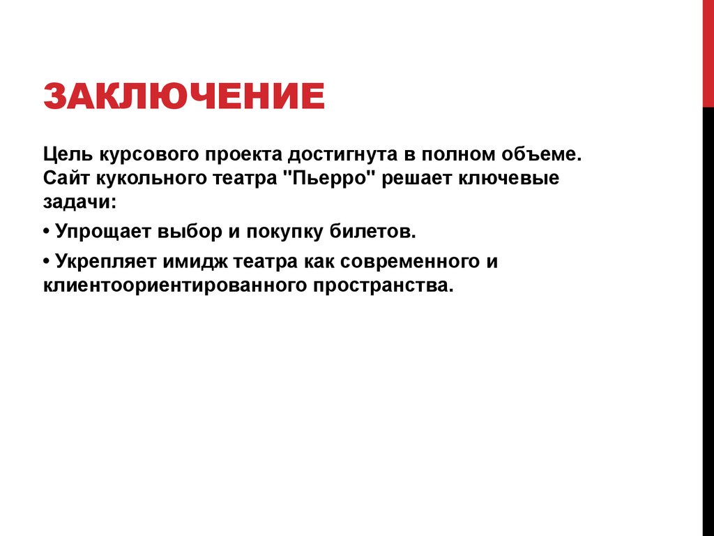 ЗАКЛЮЧЕНИЕЦель курсового проекта достигнута в полном объеме.