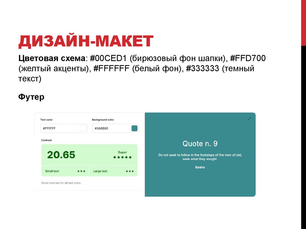 ДИЗАЙН-МАКЕТЦветовая схема: #00CED1 (бирюзовый фон шапки), #FFD700