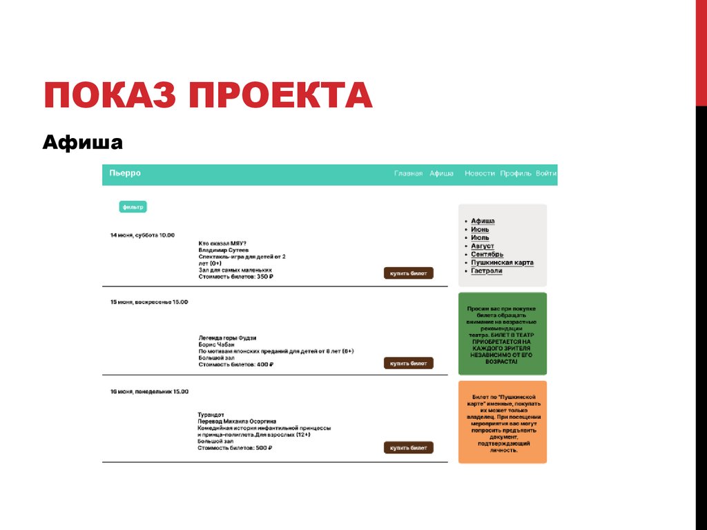 Разработка интерфейса web-сайта кукольного театра «Пьерро»