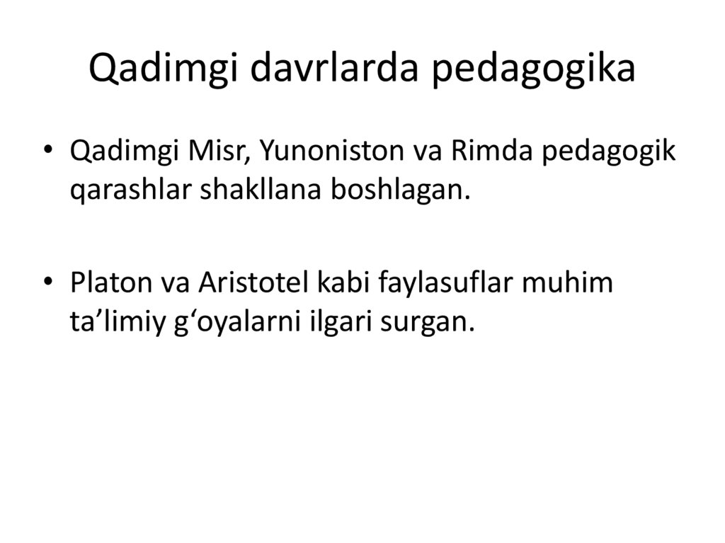 Pedagogikaning tarixiy taraqqiyoti• Taqdimotni tayyorladi: [Ismingiz]