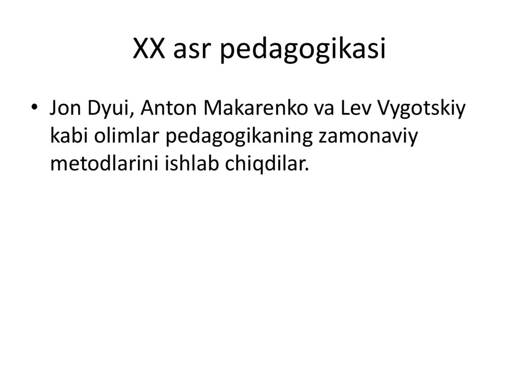XX asr pedagogikasi• Jon Dyui, Anton Makarenko va Lev Vygotskiy