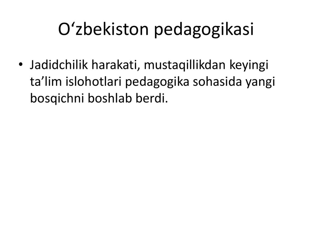 O‘zbekiston pedagogikasi• Jadidchilik harakati, mustaqillikdan keyingi