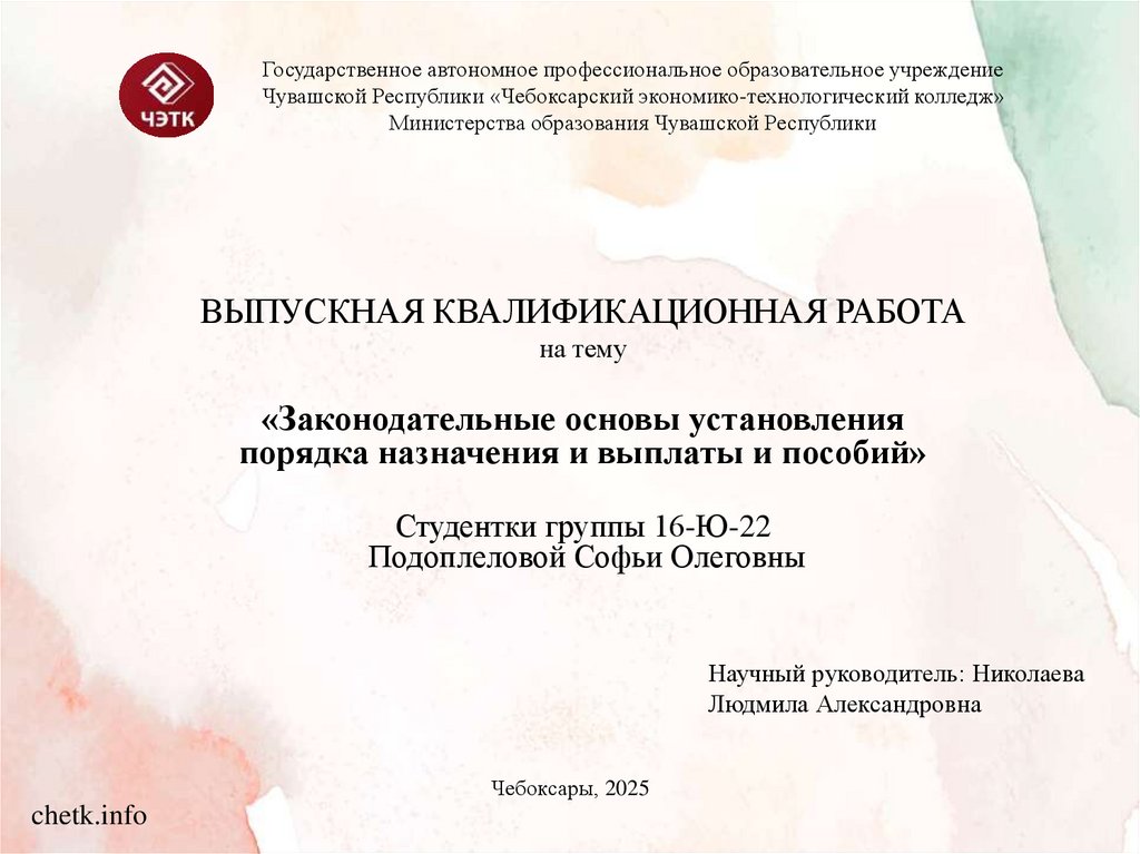 Государственное автономное профессиональное образовательное учреждение Чувашской Республики«Чебоксарский экономико-технологический колледж» Министерства образования Чувашской