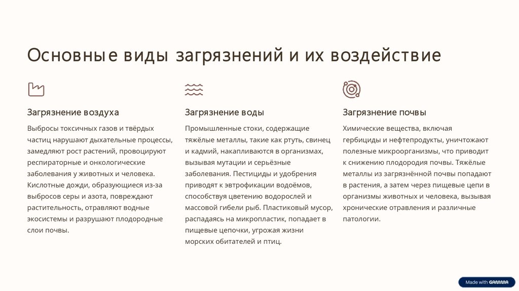 презентации мы рассмотрим основные виды загрязнений и их пагубное