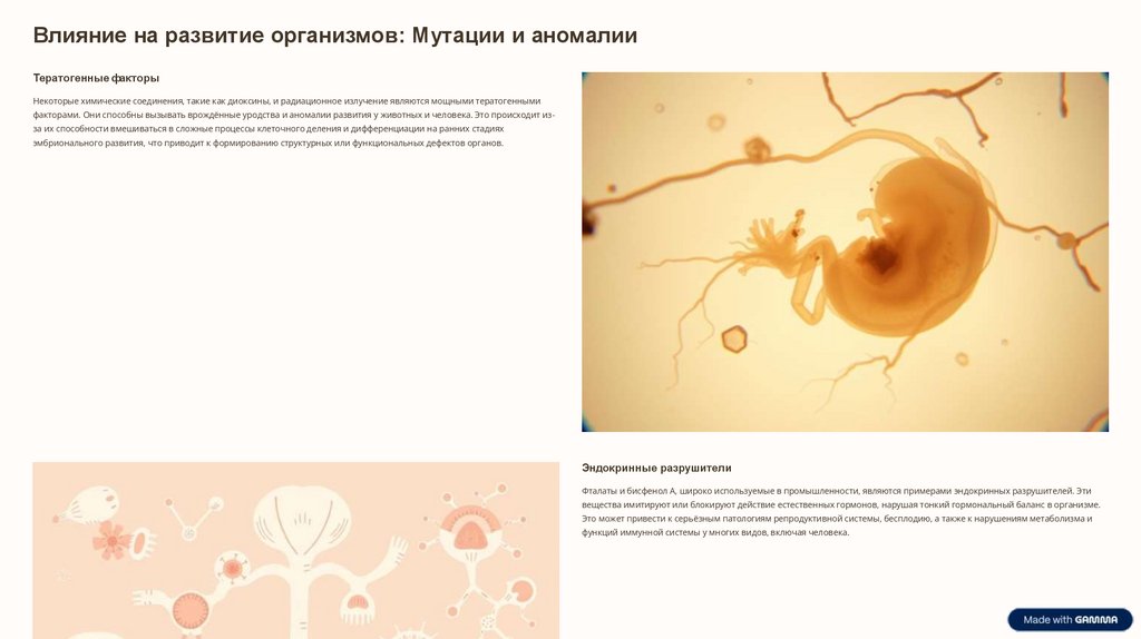 факторами. Они способны вызывать врождённые уродства и аномалии развития у животных и человека. Это происходит изза их способности вмешиваться в сложные процессы клеточного деления и дифференциации на ранних стадиях