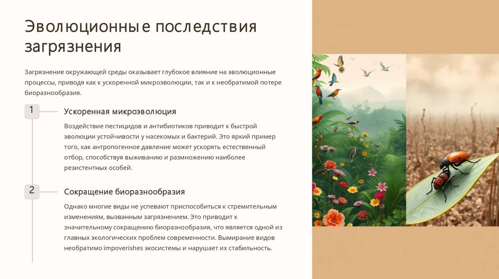 Загрязнение окружающей среды оказывает глубокое влияние на эволюционные