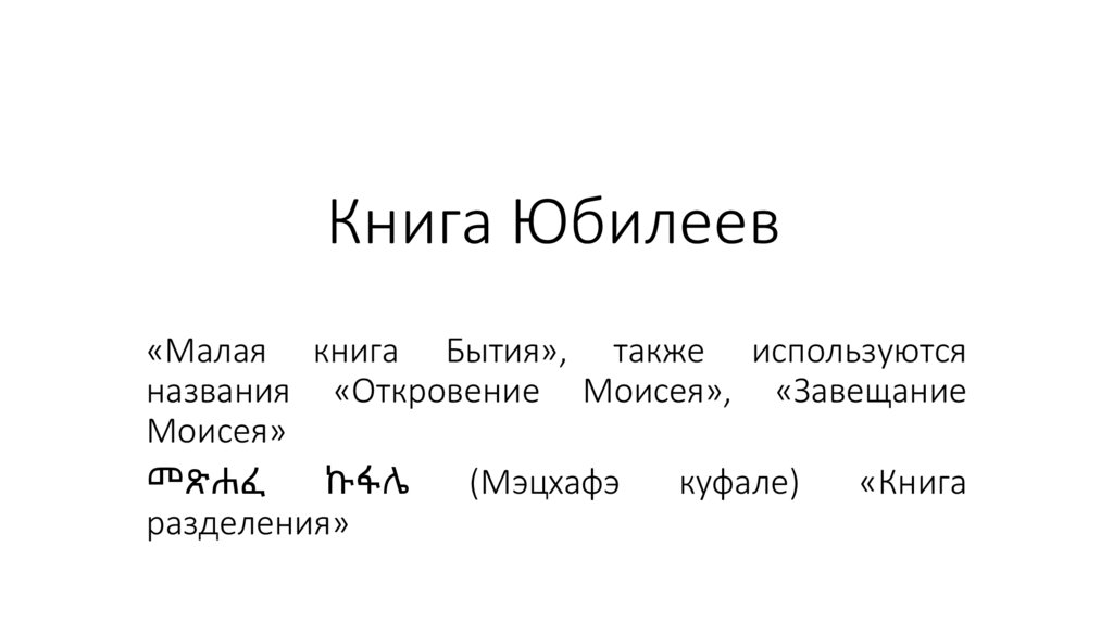 «Малая книга Бытия», также используютсяназвания «Откровение Моисея», «Завещание