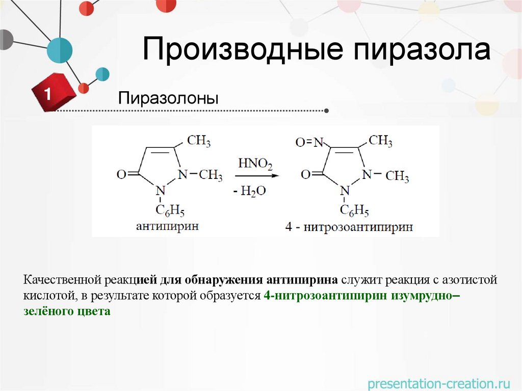 Качественной реакцией для обнаружения антипирина служит реакция с азотистой