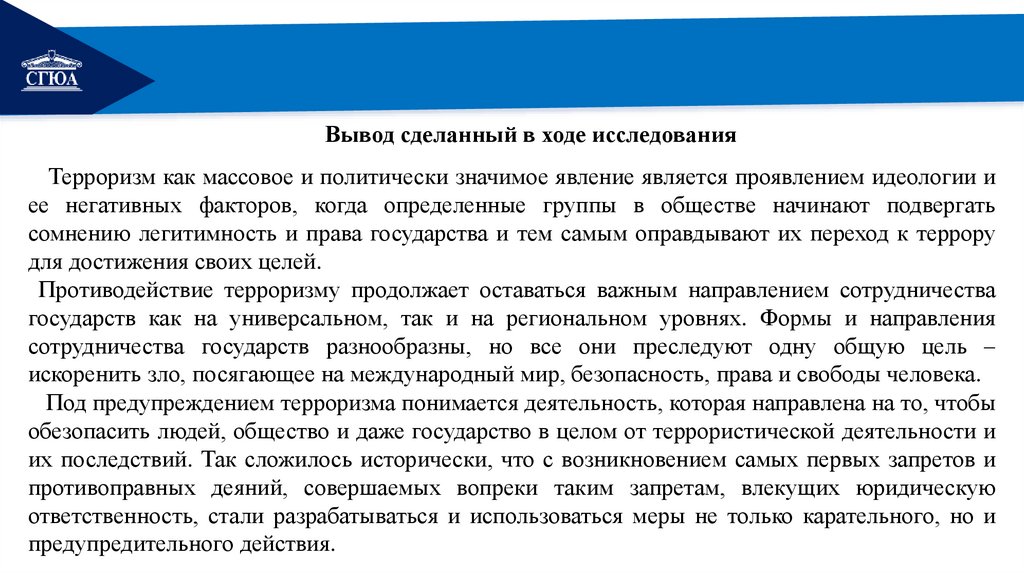 одной из самых опасных проблем XXI века. Поэтому предупреждение и противодействие