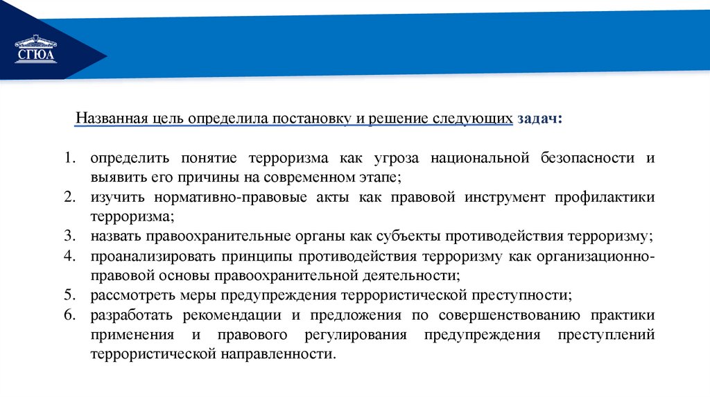 4. проанализировать принципы противодействия терроризму как организационноправовой основы правоохранительной деятельности;