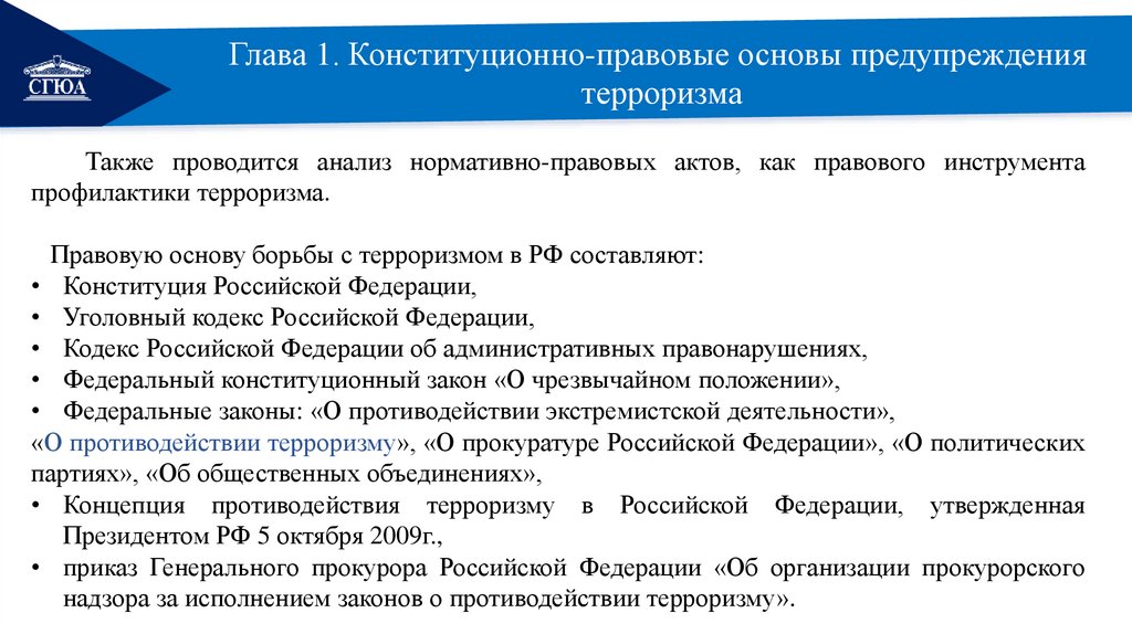 Правовую основу борьбы с терроризмом в РФ составляют: