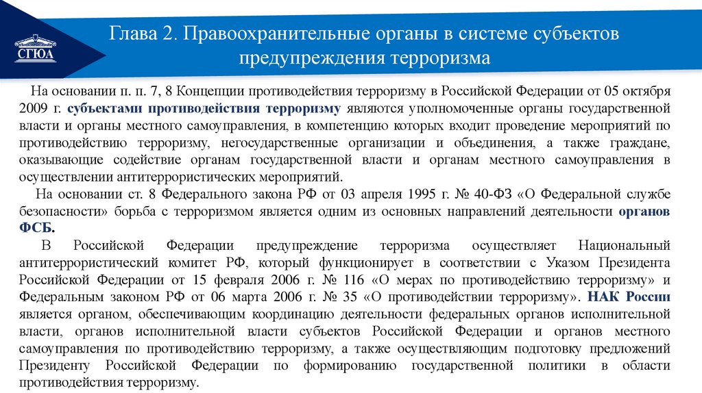 РЕМОНТ Глава 2. Правоохранительные органы в системе субъектовпредупреждения терроризма