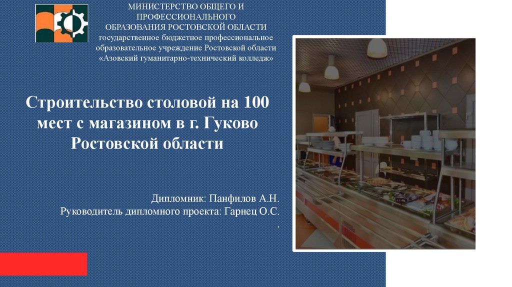 Строительство столовой на 100 мест с магазином в г. Гуково Ростовской области