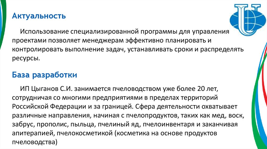 различные направления, начиная с пчелопродуктов, таких как мед, воск,