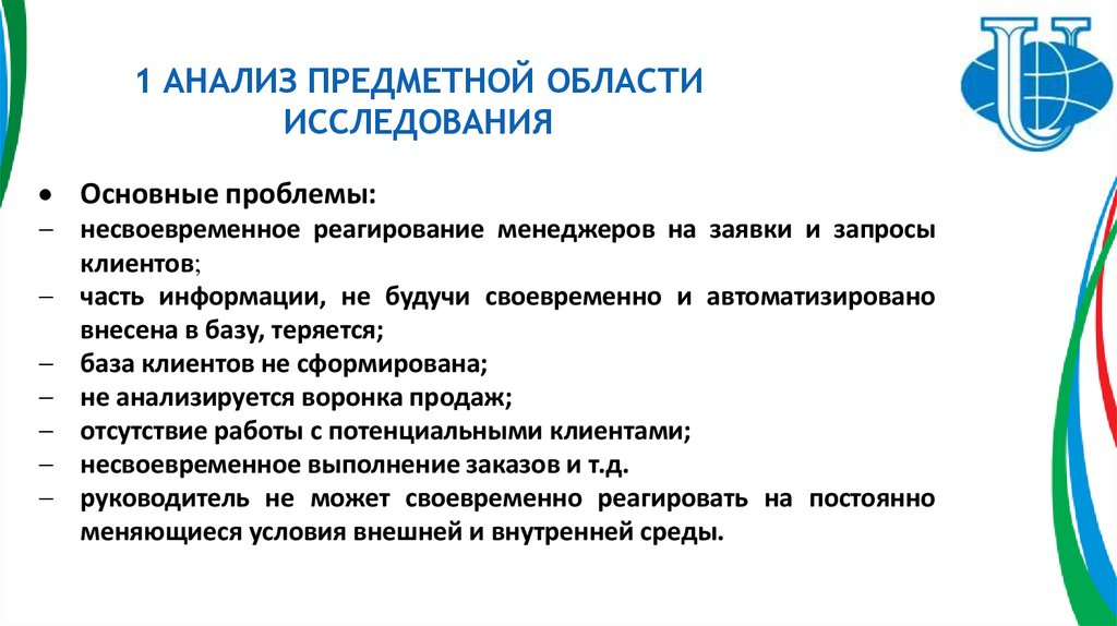 1 АНАЛИЗ ПРЕДМЕТНОЙ ОБЛАСТИИССЛЕДОВАНИЯ