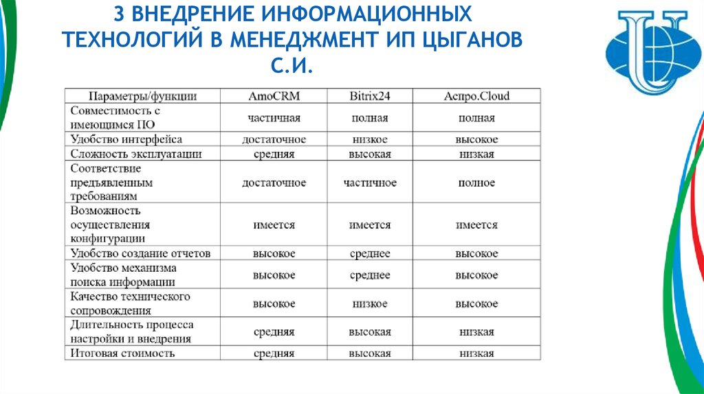 3 ВНЕДРЕНИЕ ИНФОРМАЦИОННЫХТЕХНОЛОГИЙ В МЕНЕДЖМЕНТ ИП ЦЫГАНОВ