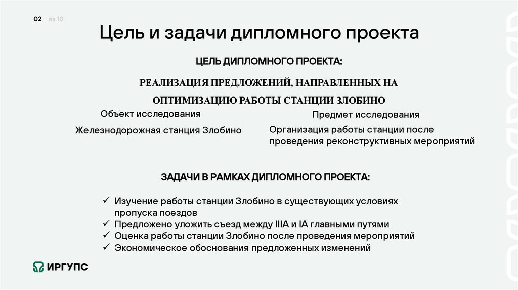 02 из 10Цель и задачи дипломного проекта