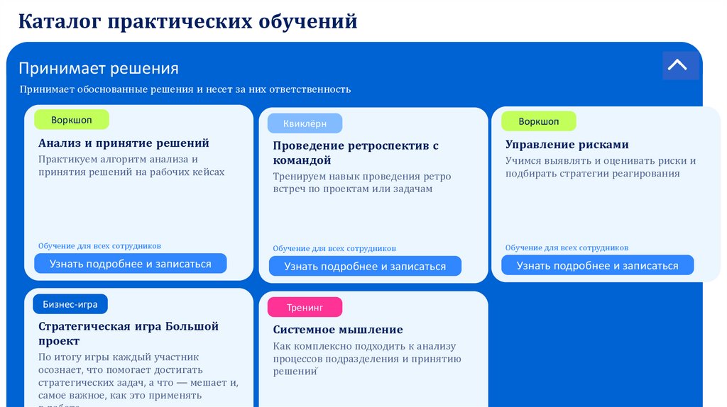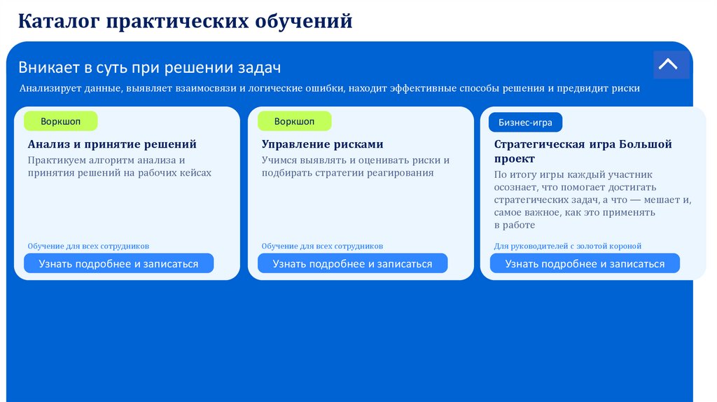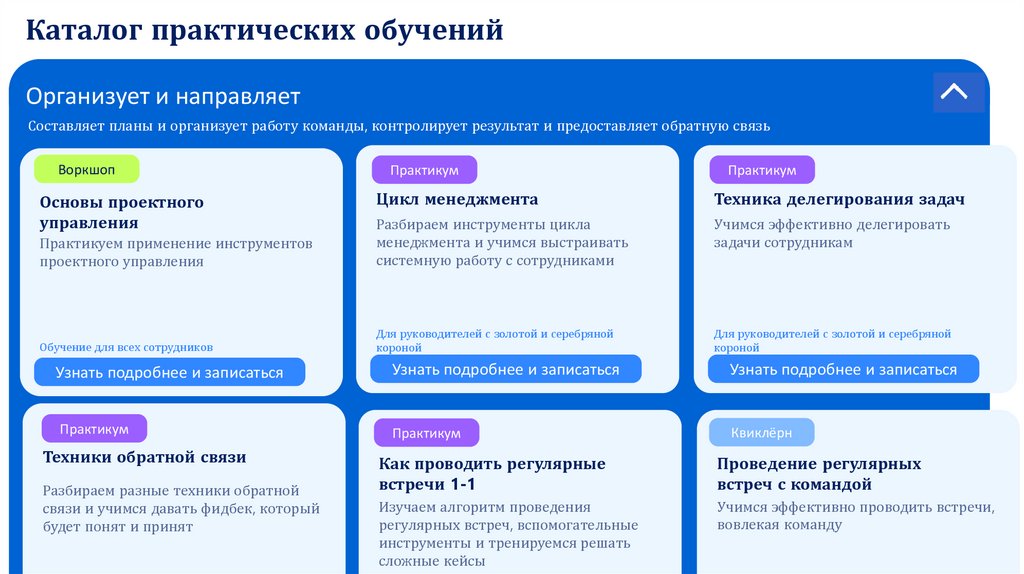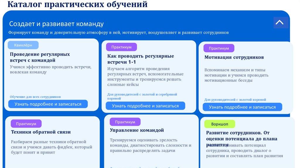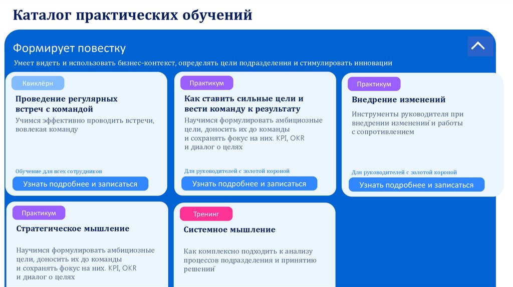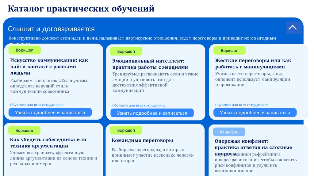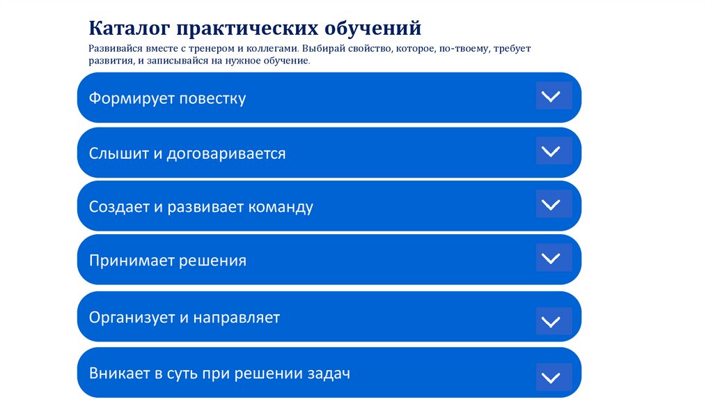 Каталог практических обученийРазвивайся вместе с тренером и коллегами. Выбирай свойство, которое, по-твоему, требует