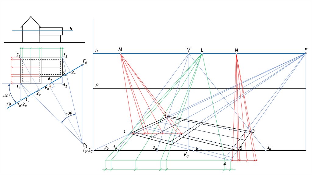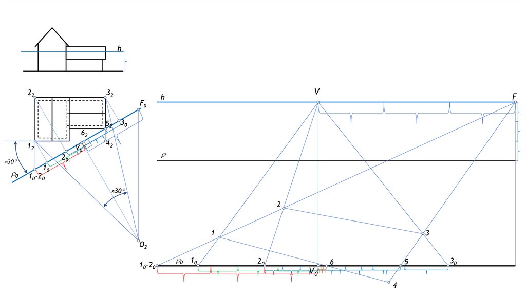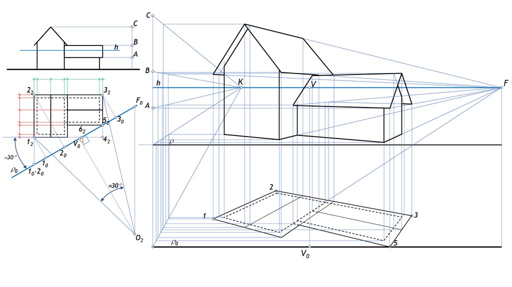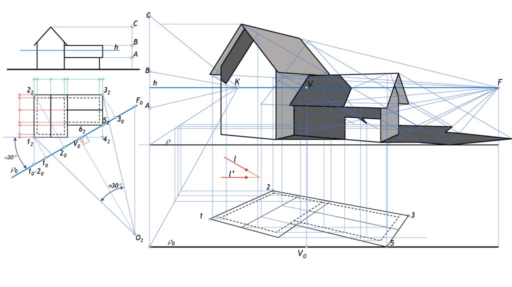 Сәулетшілер тәсілімен (төмен.план) үйдің перспективасын көлеңкелерімен салу