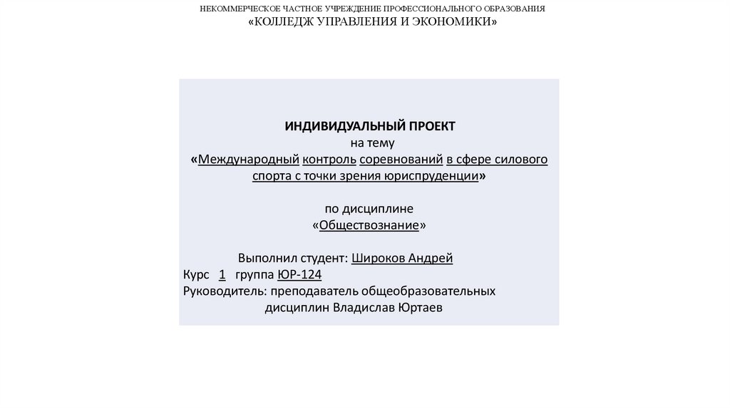 • Именно поэтому цель данного проекта заключается в анализемеждународного контроля соревнований в сфере силового