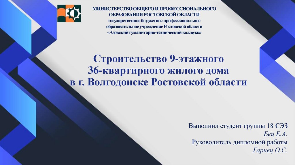1. Строительство 9-этажного 36-квартирного жилого дома в г. Волгодонске Ростовской области