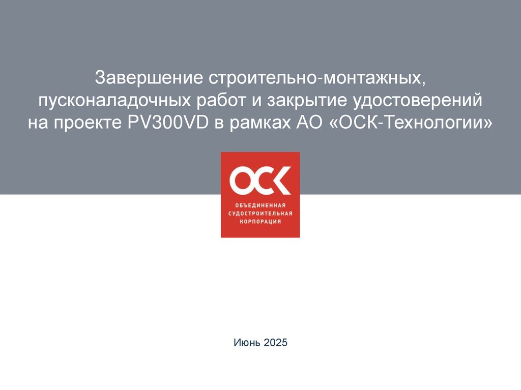 Завершение строительно-монтажных, пусконаладочных работ и закрытие удостоверений на проекте PV300VD в рамках АО «ОСК-Технологии»