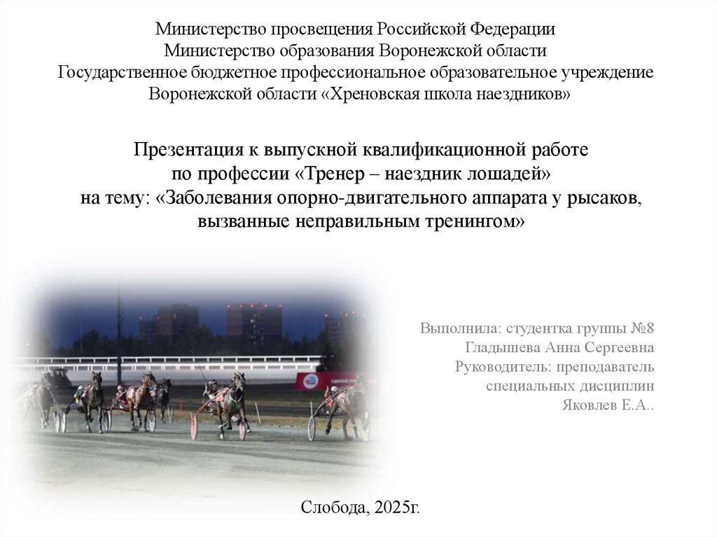1. Презентация к выпускной квалификационной работе по профессии «Тренер – наездник лошадей» на тему: «Заболевания