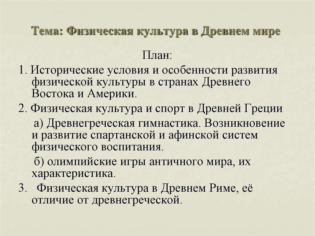 3. 1. Исторические условия и особенности развития физической культуры в странах Древнего востока и Америки.