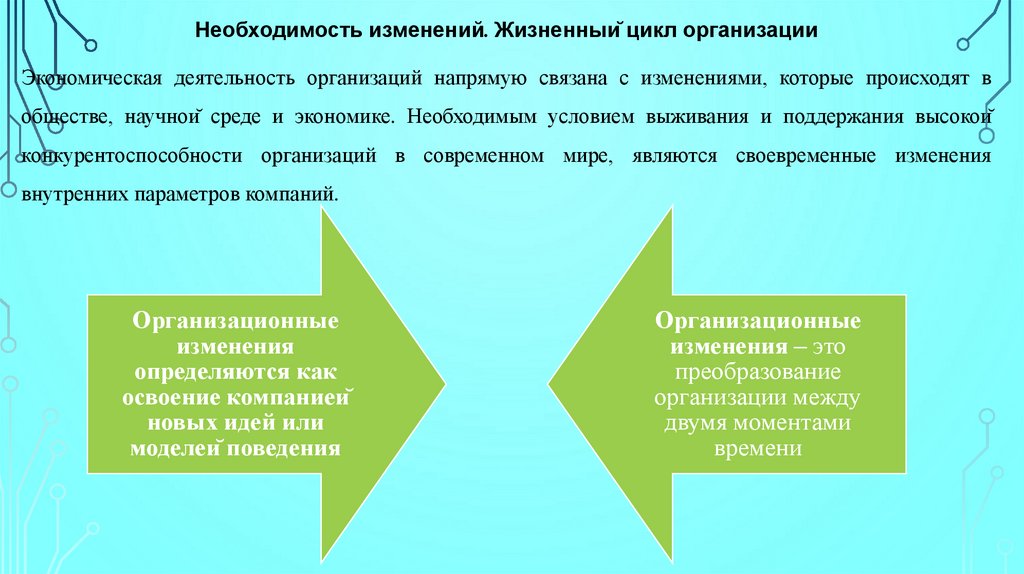 Необходимость изменений. Жизненный цикл организацииЭкономическая деятельность организаций напрямую связана с изменениями, которые происходят в