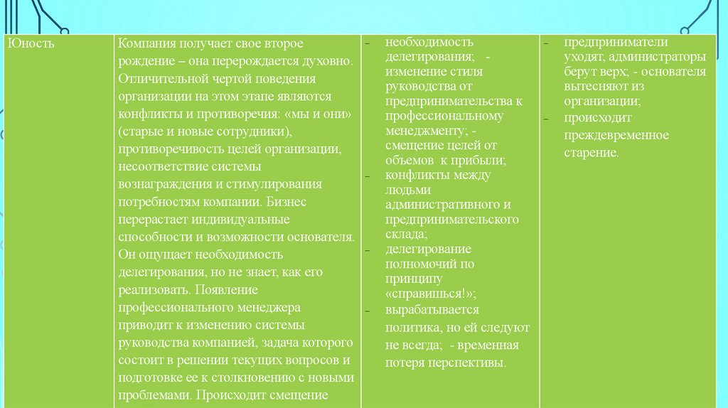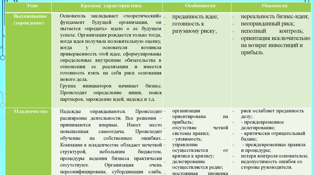 жизненного цикла организации, поскольку каждой стадии присущи свои специфические