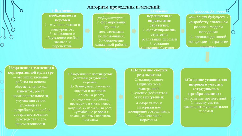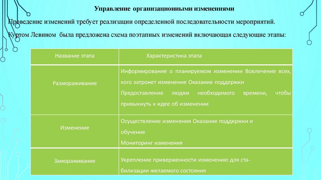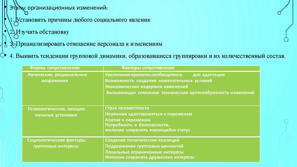 • Этапы организационных изменений:• 1. Установить причины любого социального явления