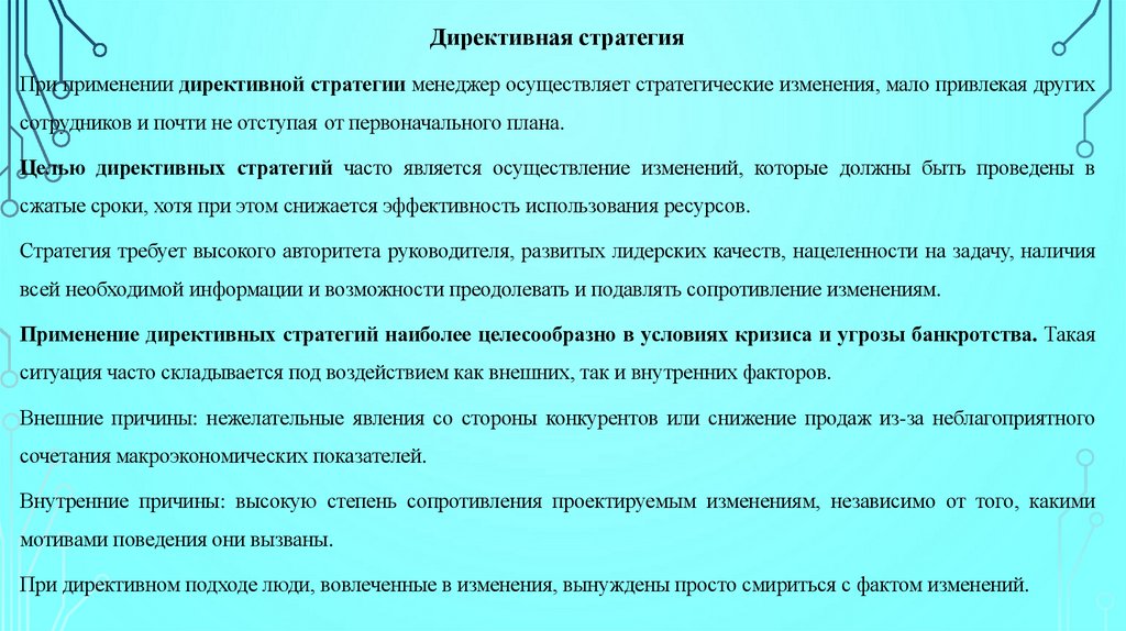 изменению. Может стать единственным вариантом для менеджера в ситуациях, когда
