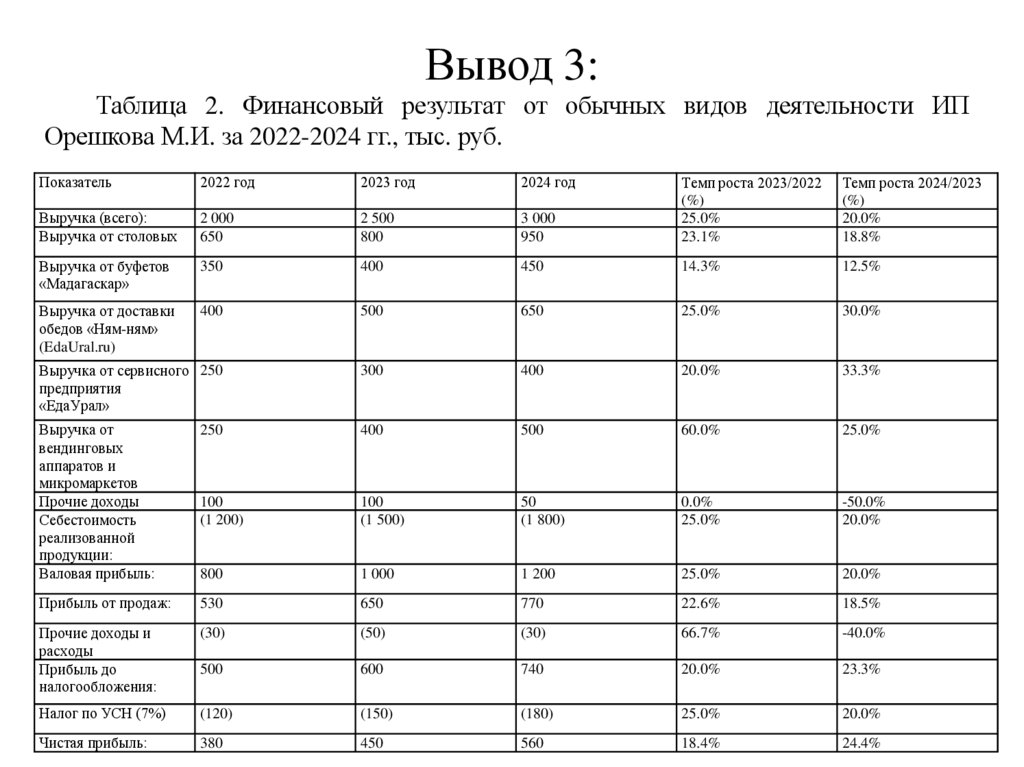 Вывод 3:Таблица 2. Финансовый результат от обычных видов деятельности ИП