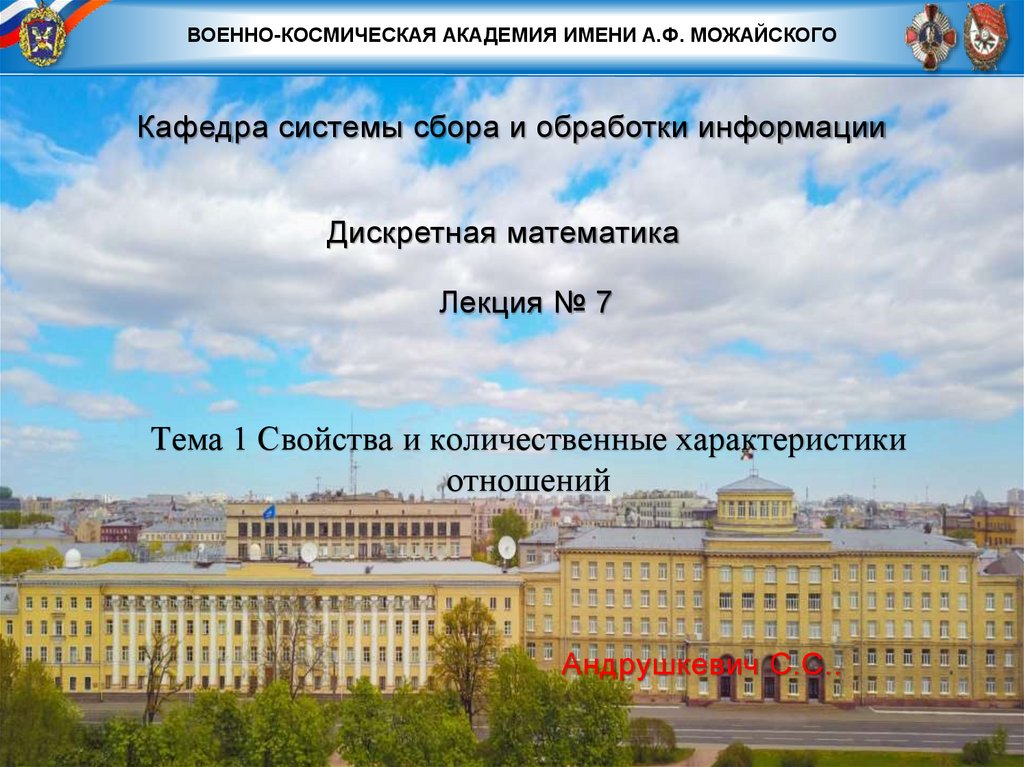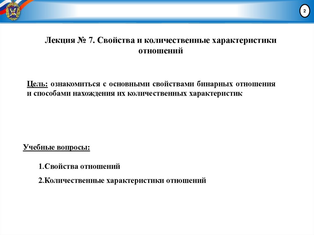 Лекция № 7 Тема 1 Свойства и количественные характеристики отношений