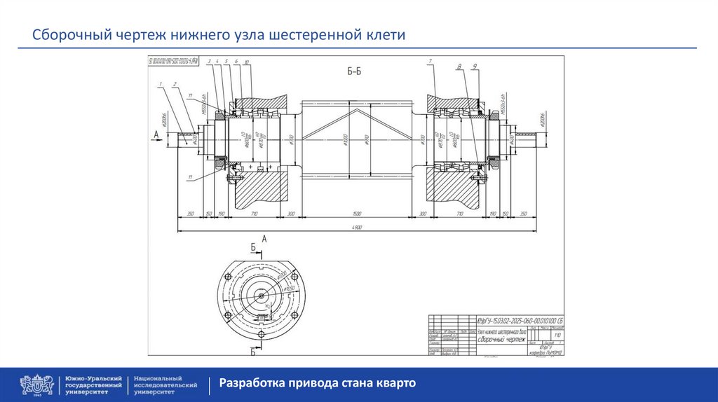 Сборочный чертеж нижнего узла шестеренной клетиРазработка привода стана кварто
