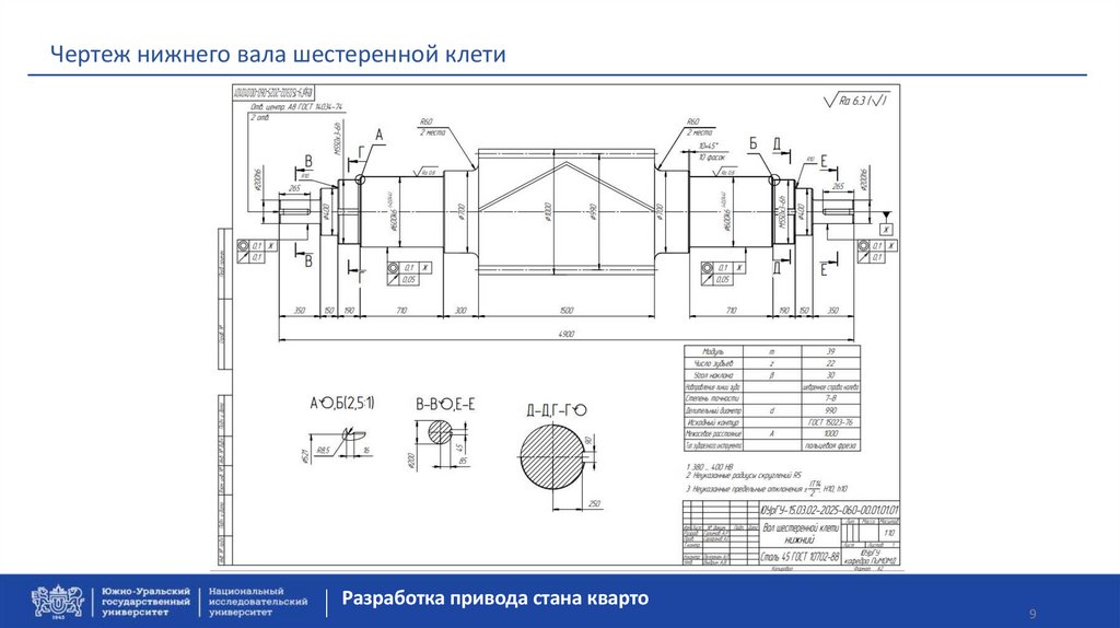 Чертеж нижнего вала шестеренной клетиРазработка привода стана кварто