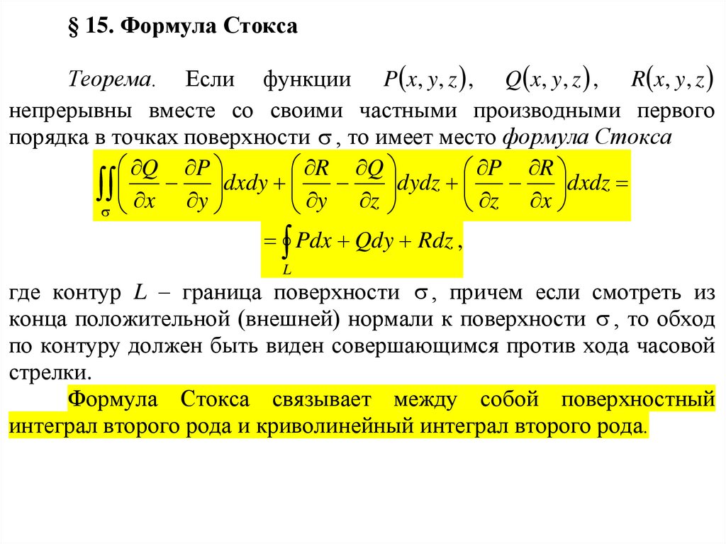 § 15. Формула СтоксаТеорема. Если функции P x, y, z , Q x, y, z , R x, y, z