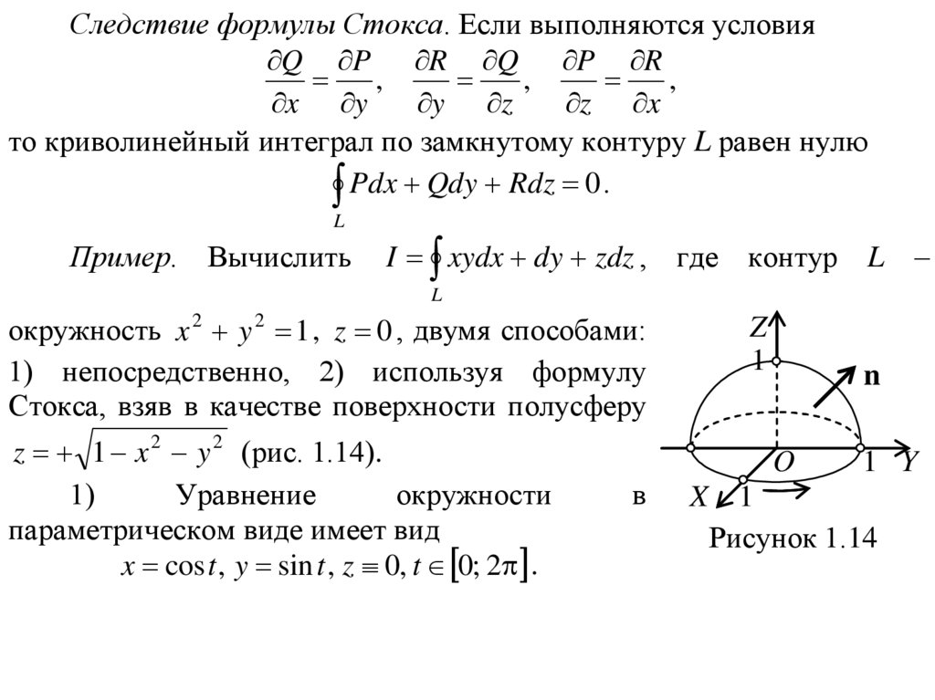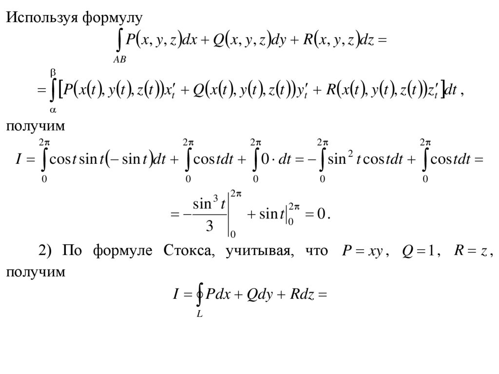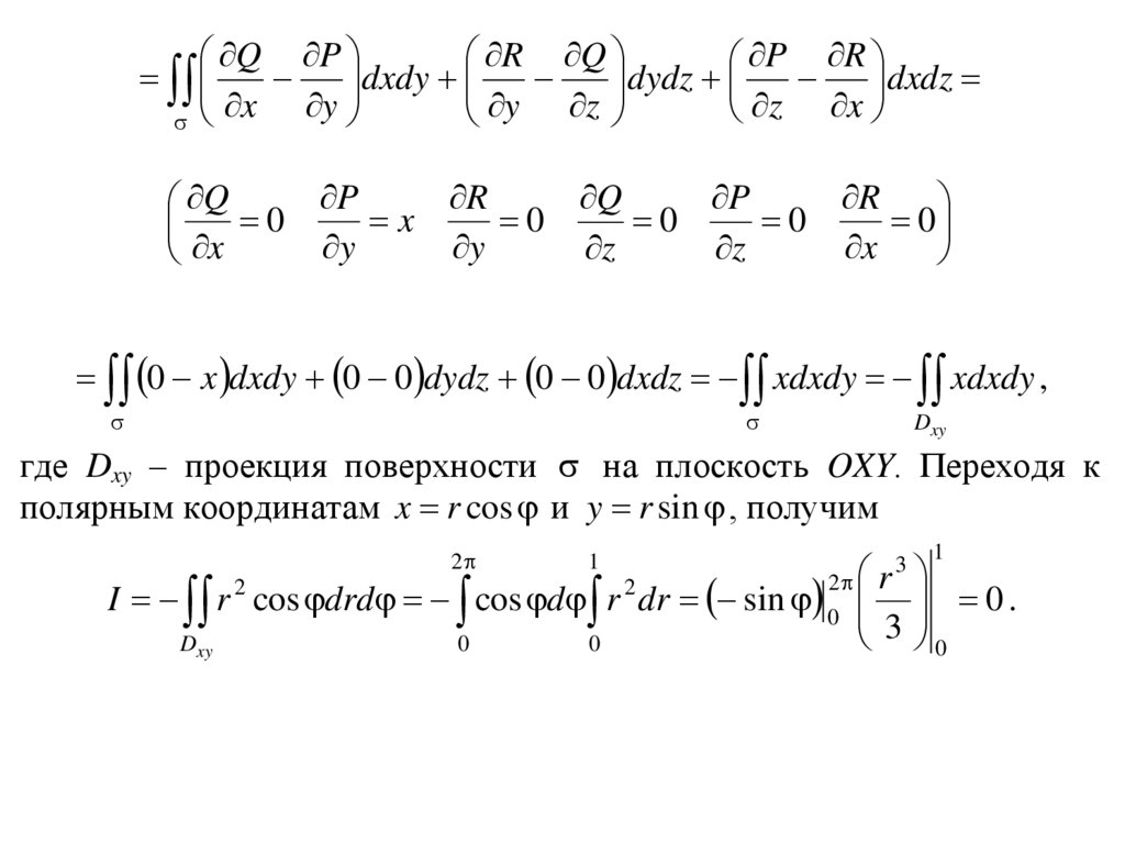 2) По формуле Стокса, учитывая, что P xy , Q 1 , R z ,