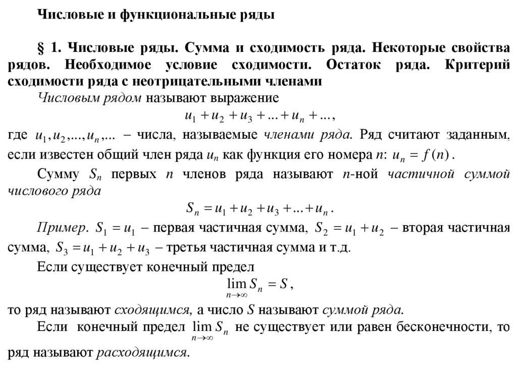 Числовые и функциональные ряды§ 1. Числовые ряды. Сумма и сходимость ряда. Некоторые свойства