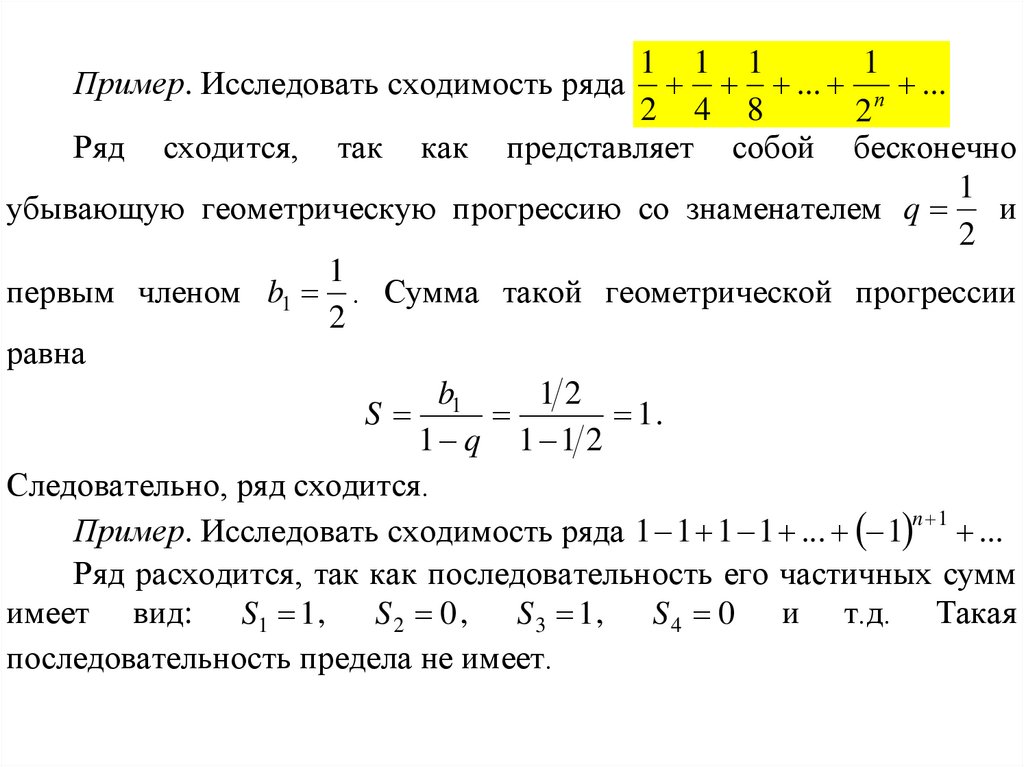 Пример. Исследовать сходимость ряда 1 1 1 1 ... 1 n 1 ...