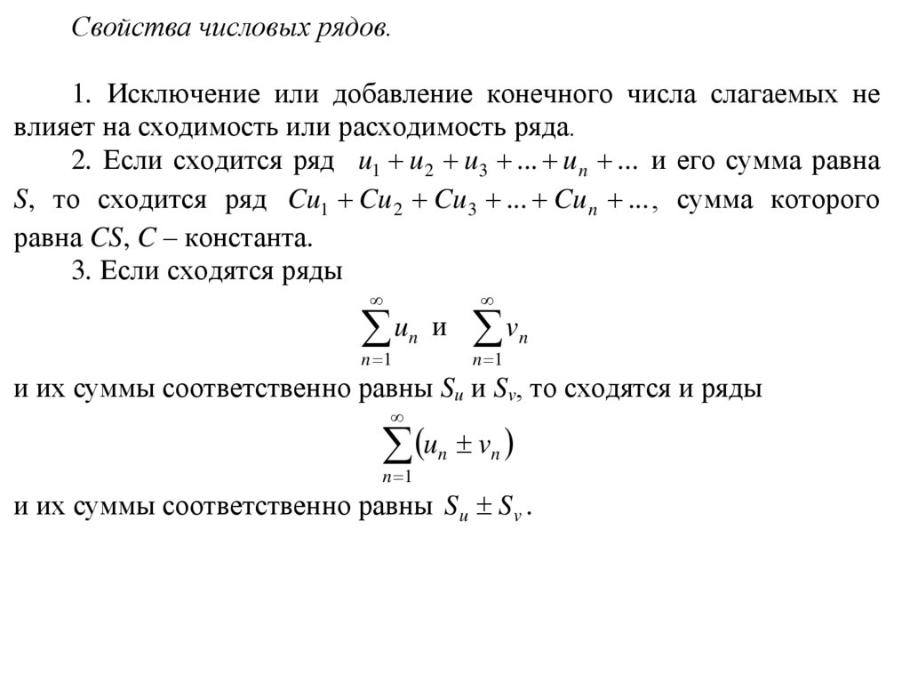 Свойства числовых рядов.1. Исключение или добавление конечного числа слагаемых не