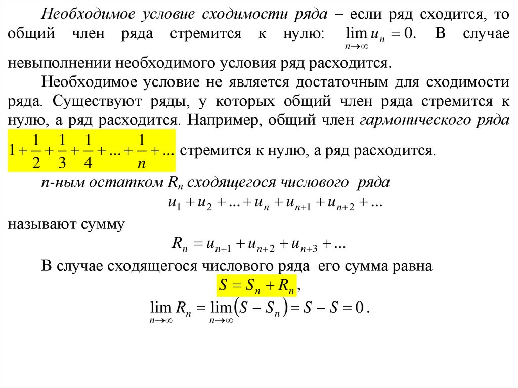 рядов. Необходимое условие сходимости. Остаток ряда. Критерий