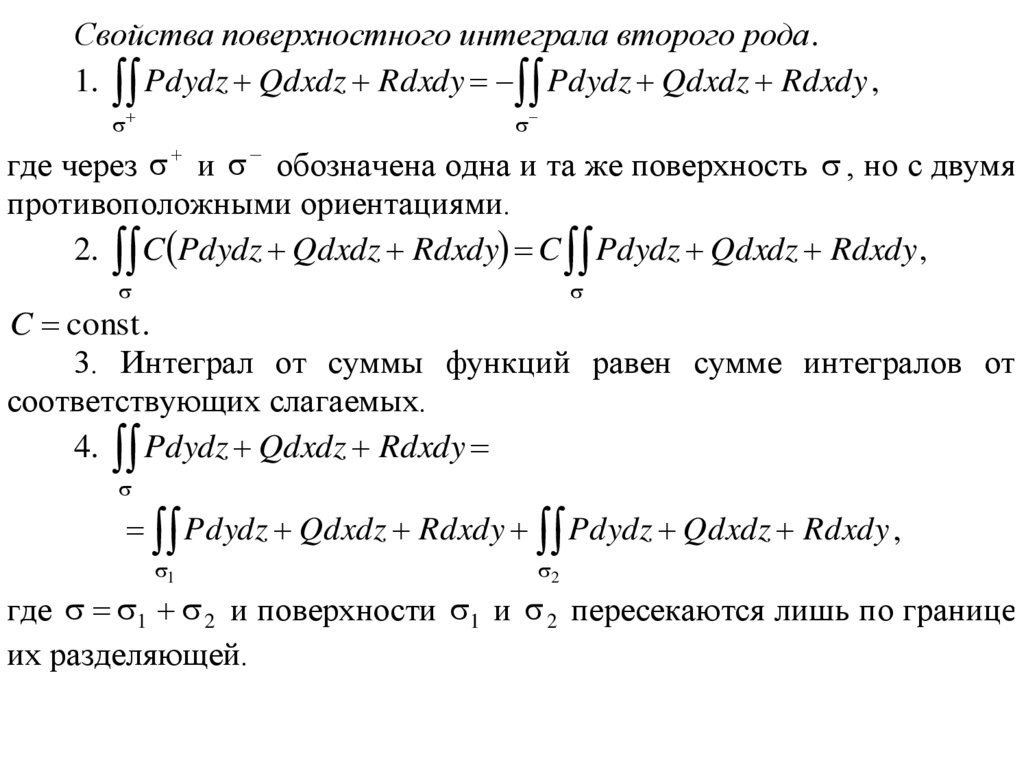 Свойства поверхностного интеграла второго рода.1. Pdydz Qdxdz Rdxdy Pdydz Qdxdz Rdxdy ,