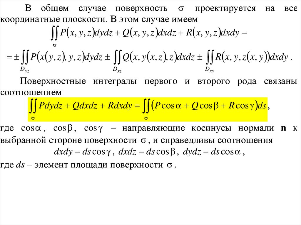 поверхностный интеграл второго рода по замкнутой поверхности и