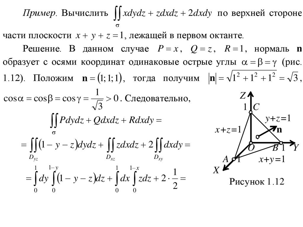 Решение. В данном случае P x , Q z , R 1 , нормаль n