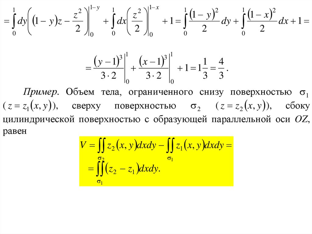 ( z z1 x, y ), сверху поверхностью 2 ( z z 2 x, y ), сбоку