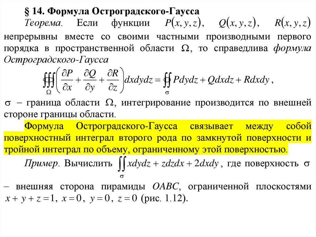 § 14. Формула Остроградского-ГауссаТеорема. Если функции P x, y, z , Q x, y, z , R x, y, z