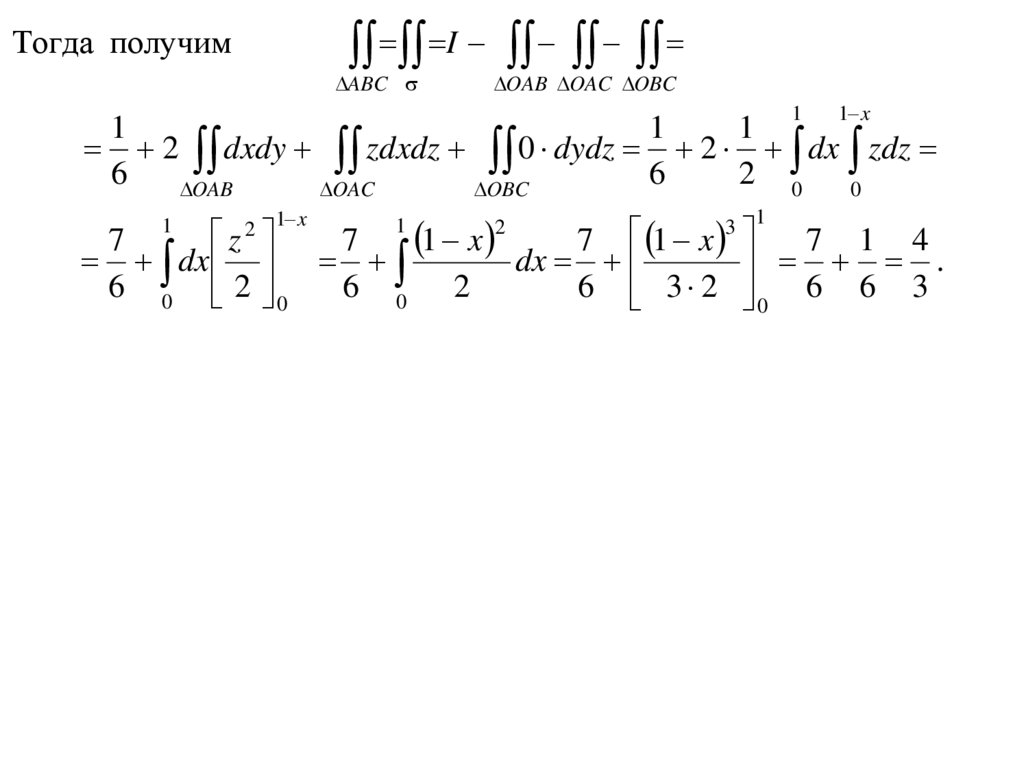 Пример. Вычислить xdydz zdxdz 2dxdy по верхней сторонечасти плоскости x y z 1, лежащей в первом октанте.
